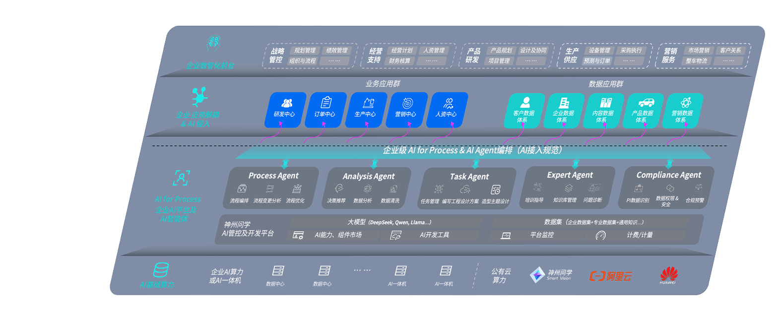 端到端的一站式AI工作空间深度融合了从企业战略规划到日常经营的全流程业务板块,,,,定向解决车企内部领域多、、、部门多、、链条长、、场景碎片化等难题,,支持车企快速构建以AI为核心的生产力写作体系,,实现任务执行与AI能力的无缝集成与交互